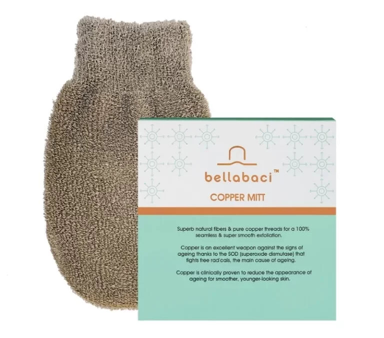 De kopere Scrub handschoen is ook een magische handschoen. Deze is voor het lichaam en zorgt voor een heerlijke exfoliatie van de huid.