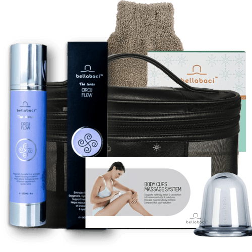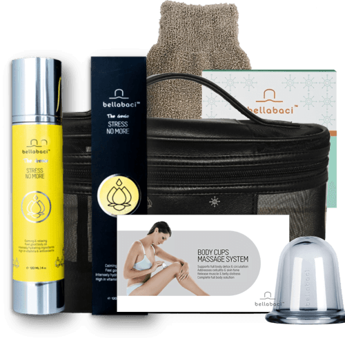 Het zwarte Bellabaci tasje is samengesteld met een set Body cups, een Genie naar keuze en de magische Copper Mitt. Alles wat je nodig hebt om een effectieve cupping lichaamsmassage uit te voeren zit overzichtelijk bij elkaar.