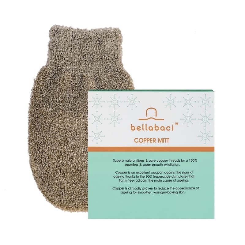 • 1 Copper Mitt, ideaal om dode huidcellen te verwijderen en de doorbloeding te stimuleren