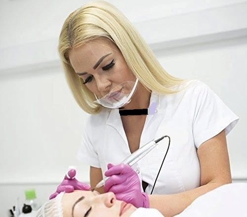 Een hygiënisch en gastvrij transparant mondkapje, speciaal voor medewerkers in schoonheidssalons, massagesalons, fysiotherapeuten, huidtherapeuten, nagelsalons, pedicures, horeca, kappers, logopedisten, docenten doveninstituten en andere opleidingsinstituten.