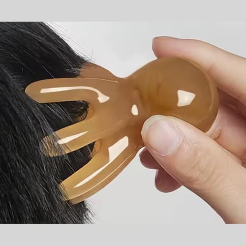Vooral te gebruiken bij een hoofdhuidmassage, maar het is een mooie toevoeging om de hoofdhuid te masseren bij gezichtscupping, oormassage, drukpuntmassage maar ook als guasha tool bij armen, borst etc.