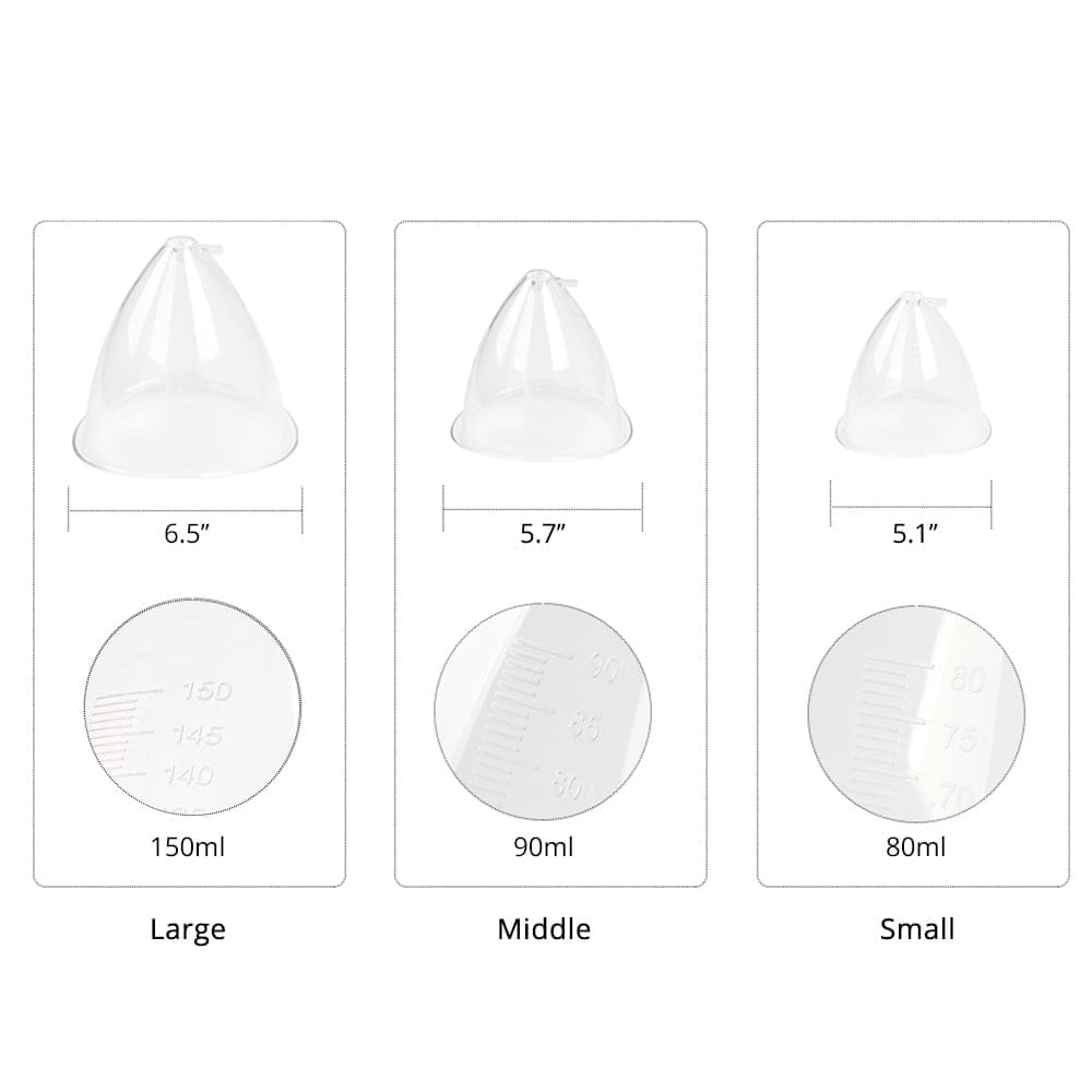 – 3 sets bil en borstcups resp. 150ml, 90ml en 80 ml