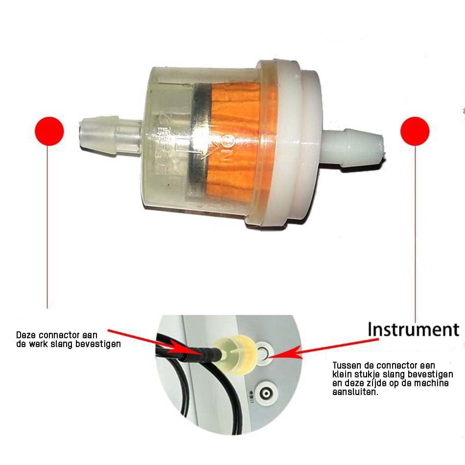 Als extra kun je ook tussen de slangetjes een extra filter plaatsen om je Bodydrainer optimaal te beschermen tegen de gebruikte tussenstof.